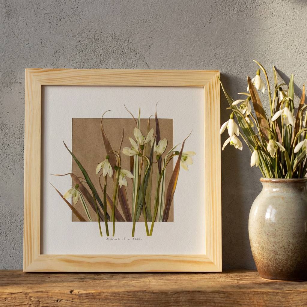 100% Натуральность: В работе использованы подлинные цветы подснежника с дополнением травки. Цветы прошли процесс профессионального прессования. Мы сохранили их природную прозрачность лепестков и хрупкую графику стеблей.Эстетика ручной работы: Каждое растение уложено вручную, что делает картину единственной в своем роде. Повторить точный изгиб лепестка невозможно. Все цветы выращены и собраны с любовью в Кыргызстане